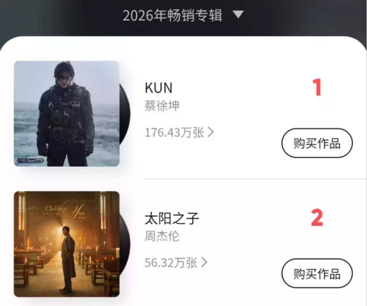 无论是与面前单平台销量最初的蔡徐坤2026年新专辑比拟,如故与周杰伦我方上一张作品《最伟大的作品》相较,《太阳之子》的销量王人显得差距明白。