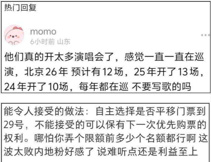 争议的背后,五月天夙昔的一些黑历史也被翻了出来:2023年的鸟巢演唱会,因为鸡蛋炒饭志愿者餐激发群愤,2024年上海场又深陷假唱疑团。如今,此次模糊的补偿决策再次触发信任危险,不少粉丝难熬快什么:二十年的芳华滤镜,居然碎了一地,正本咱们的救助在成本眼里如斯低价!