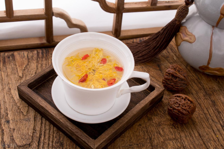这款茶饮由菊花、决明子、枸杞三味药材构成,每味药材齐有其私有功效: