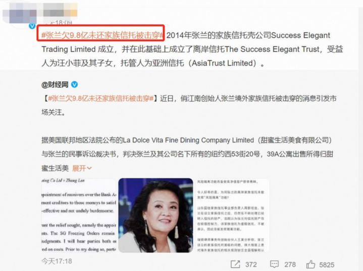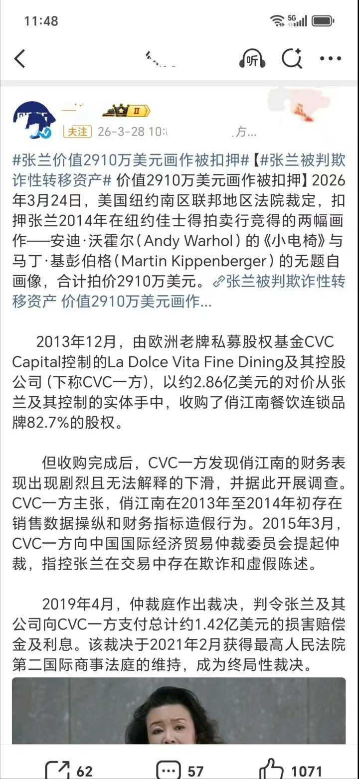 三月底,好意思国纽约南区联邦地区法院的一则裁决,如重锤猛击,令张兰的外洋钞票保卫战再陷困局。