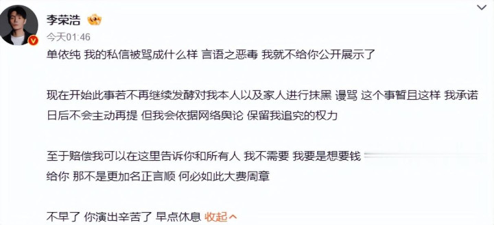 而他不仅在社媒直指单依纯,更放话要放出字据。