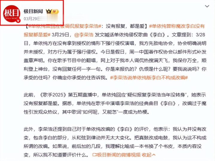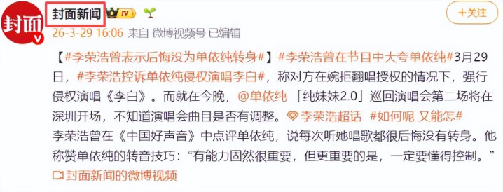 李荣浩和单依纯之间的风云从不是浮浅的版权之争。