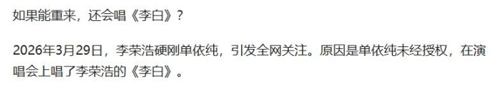早前,他曾在采访里吐槽过《李白》,说它是我方“最脑怒却最红”的歌。