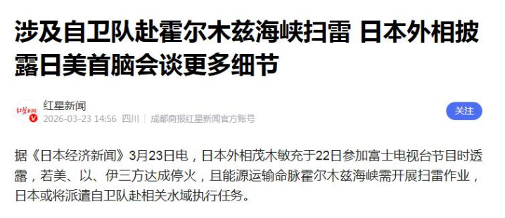 红星新闻2026-03-23波及自保队赴霍尔木兹海峡扫雷 日本皮毛败露日好意思领袖会谈更多细节