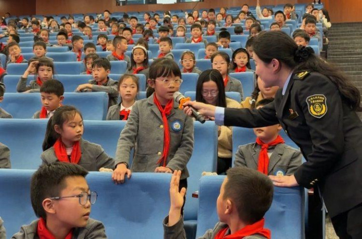 “同学们,你们坐过穿过楼房的轨谈吗?”步履在主合手东谈主活跃的发问中开场。莫得乏味的法条朗读,规则东谈主员从孩子们熟知的李子坝“穿楼”奇景、开往春天的列车提及,陡然烽火了现场氛围。