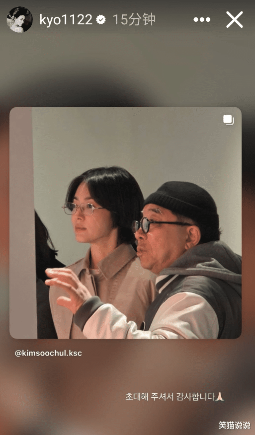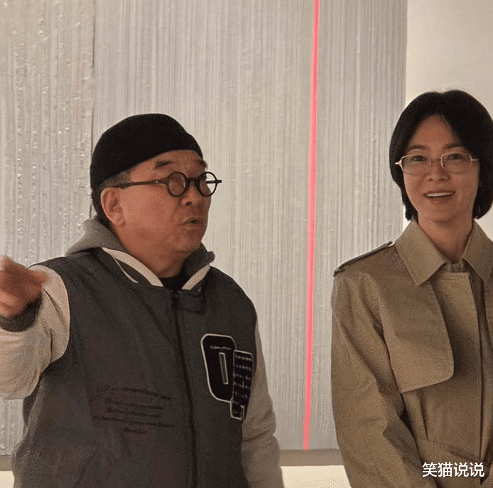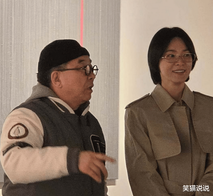 宋慧乔在前辈的教导下,稳妥地参不雅了展厅里的展览作品。像片中的宋慧乔一边听着前辈的解释,一边不雅看着展品,双手交合手,姿色看起来很是乖巧,仿佛是随着敦朴学习事务的学生雷同。