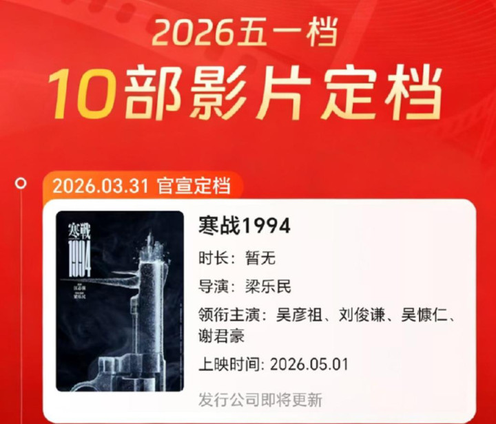 而此次《寒颤1994》官宣定档5月1日。