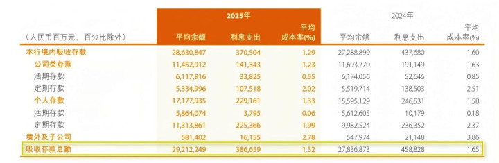 年报炫夸,2025年缔造银行收受入款平均资本率降至1.32%,同比下跌33个基点,创历史新低,带动收受入款利息开销同比减少15.73%。