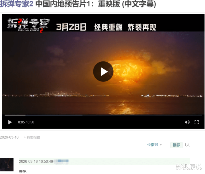 本年3月18日,《拆弹众人》发布了重映版预报,官宣将于本年3月28日驱动在内地影院重映。不少不雅众在看到这个音书以后,齐默示“你终于又雅致了”。
