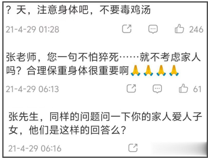 其他网友纷繁示意张雪峰喊话不怕暴毙实属毒鸡汤,让他多为家东说念主爱东说念主子女接头……
