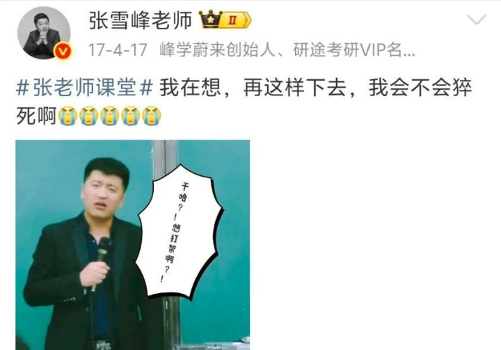 2021年,张雪峰公开喊话不怕暴毙,驳倒区径直就沦一火了,热评第一条即是“你的每一条微博皆可能成为遗言,保养体格!”