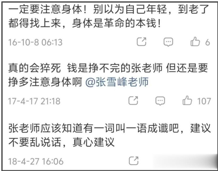 其时网友就一直劝张雪峰,把稳体格,一辈子不长,话不要胡扯。