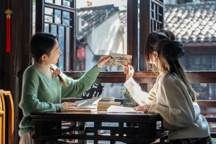 至三毛茶馆,在满室书卷气中,与闺蜜持卷共读,把古镇软风、檐角春光,都融进并肩翻页的和煦顷刻间里。