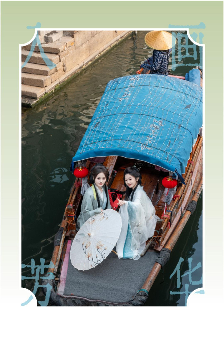 乘手摇船穿行水巷,船娘吴歌轻扬,两岸似锦探檐,舟行碧波,东谈主游画中。