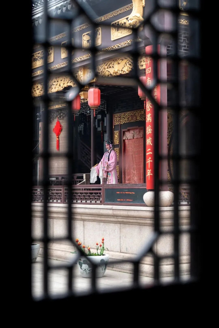 古戏台前,一曲婉转昆曲,水磨腔软,醉了春风;