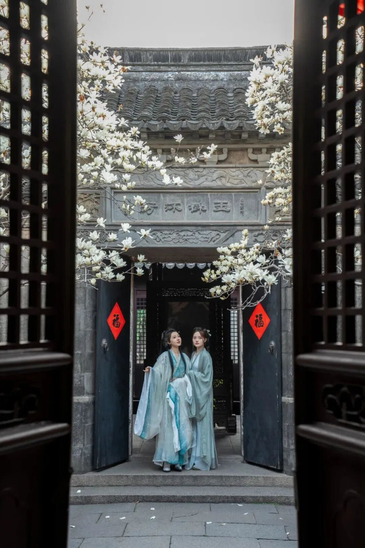张厅院内,玉兰洁白盛放,古宅深院映着绰约花容;