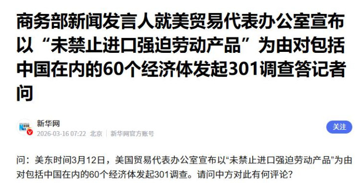 要说这整件事的世代相承,我们还得把时分稍稍往前倒一倒。就在本年的3月12日,好意思国商业代表办公室倏得跳了出来,打着所谓“产能弥漫”的幌子,对包括中国在内的十六个经济体发起了一场翻天覆地的301拜访。
