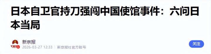 更值得警惕的,是水面之下涌动的暗潮,日本一些媒体在报说念时的“叙事时刻”颇为精妙,将闯馆者的动机描摹成“想找大使交心未果便意图寻短见”,对其“准备杀死酬酢东说念主员”的死亡要挟则一笔带过。