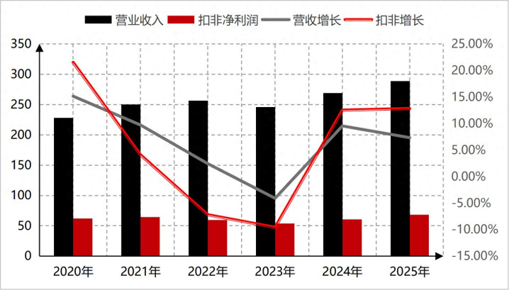 海天味业公布2025年年报,商业收入为288.73亿元,同比增长7.32%,扣非净利润为68.45亿元,同比增长12.81%。这依然是海天味业在2023年齿迹增长触底之后蚁合两年技巧商业收入同比增长,扣非净利润双位数增长了。与此同期,在海天味业净利润保管蚁合两年双位数增长的情况下,海天味业的毛利率上涨到40.22%,毛利率重回40%期间。净利润蚁合两年双位数增长,毛利率重回40%期间,是不是意味着海天味业的戴维斯双击依然出现呢,海天味业当下的合理估值是些许呢?本文来探讨这个个问题。