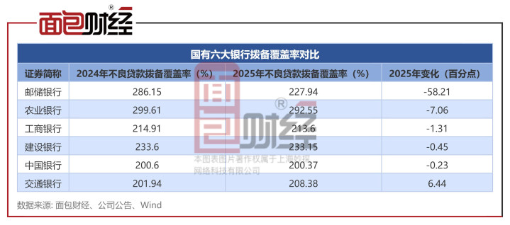 值得注释的是,邮储银行在功绩增速放缓的同期,其风险缓冲垫——“拨备隐秘率”也出现了显耀逍遥。该观点在2025年下落杰出58个百分点,降幅彰着高于其他国有大行。尽管下过时,邮储银行的拨备隐秘率仍相对较高。