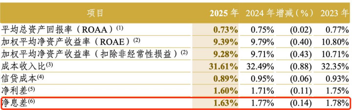 2025年祯祥银行的净息差为1.63%,比2024年下滑了14个基点。