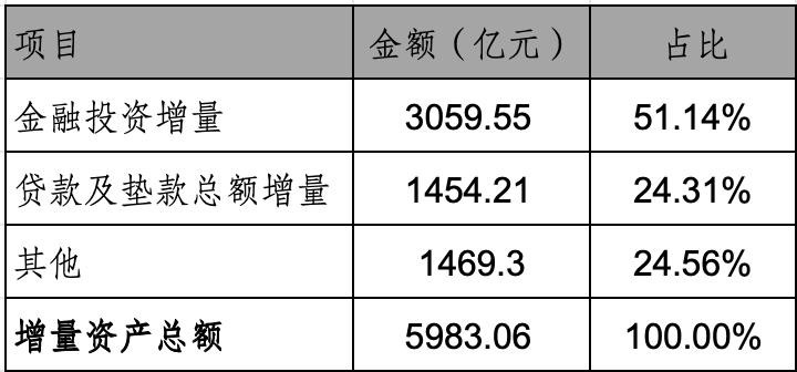 这五千多亿增量钞票中,金融投资独占了3059.55亿元,而贷款业务只分得了1454.21亿元。